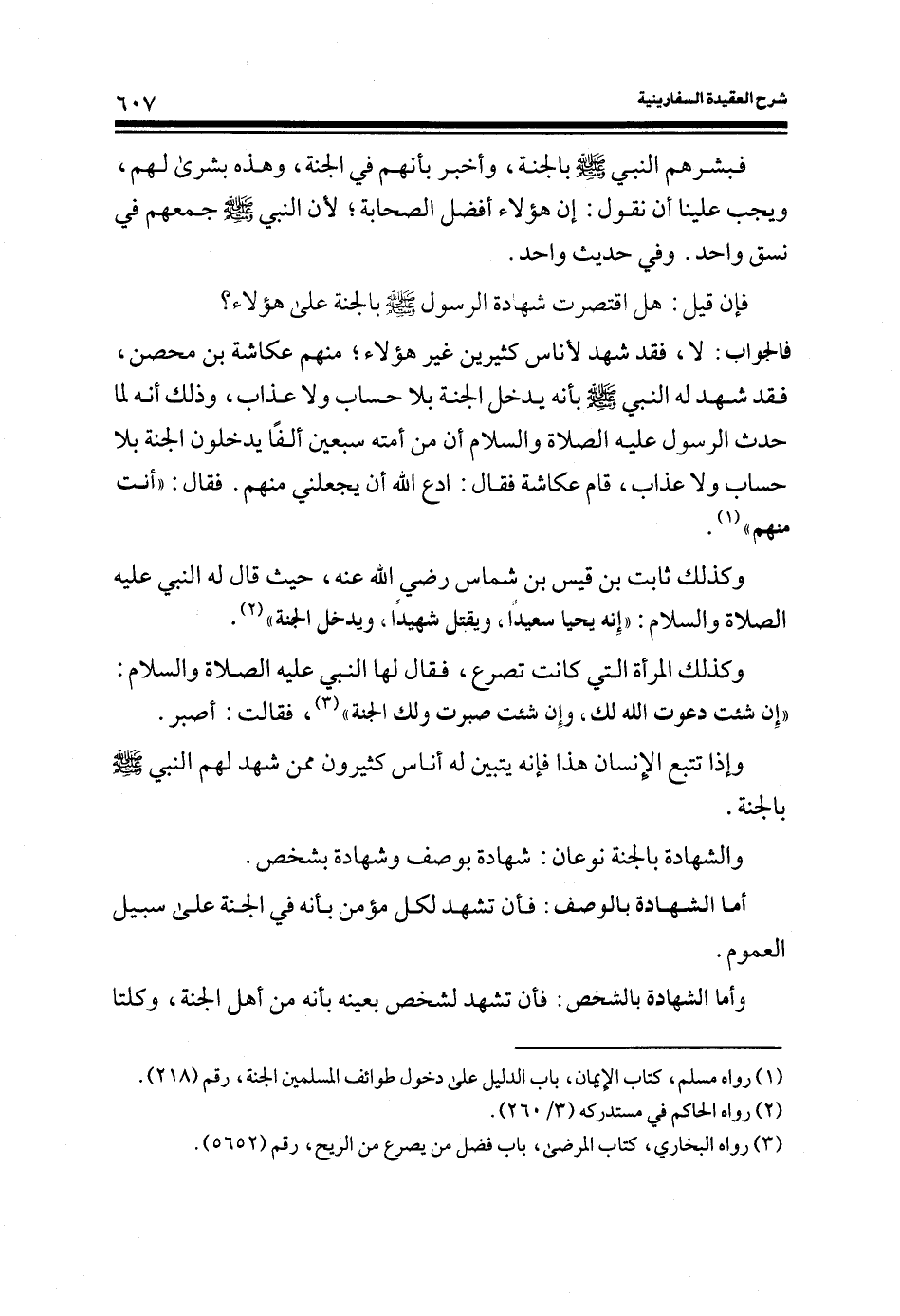 وأما الشهادة بالشخص: فأن تشهد لشخص بعينه بأنه من أهل الجنة، وكلتا