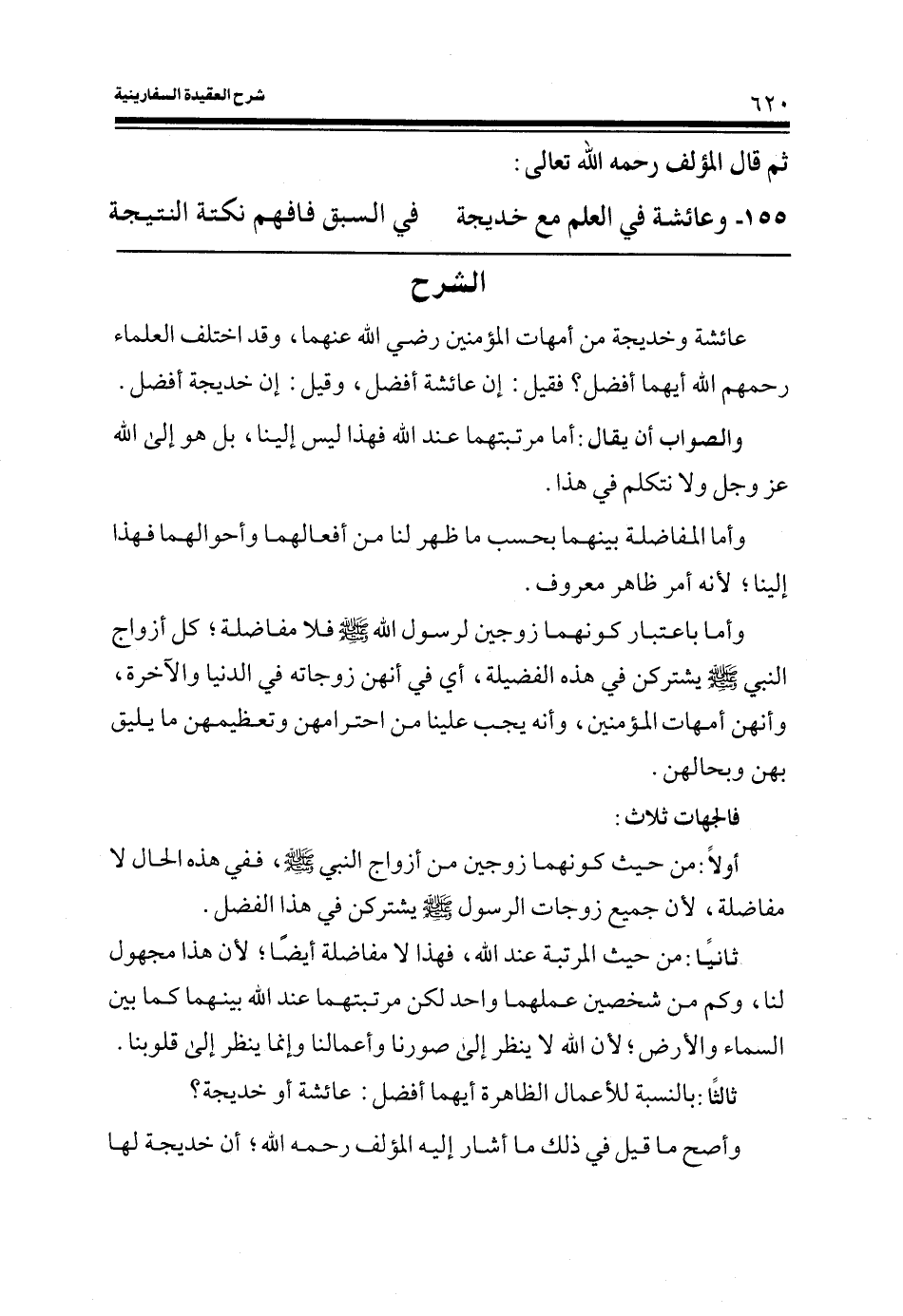 155- وعائشة في العلمِ مع خديجة ... في السبق فافهم نكتة النتيجة