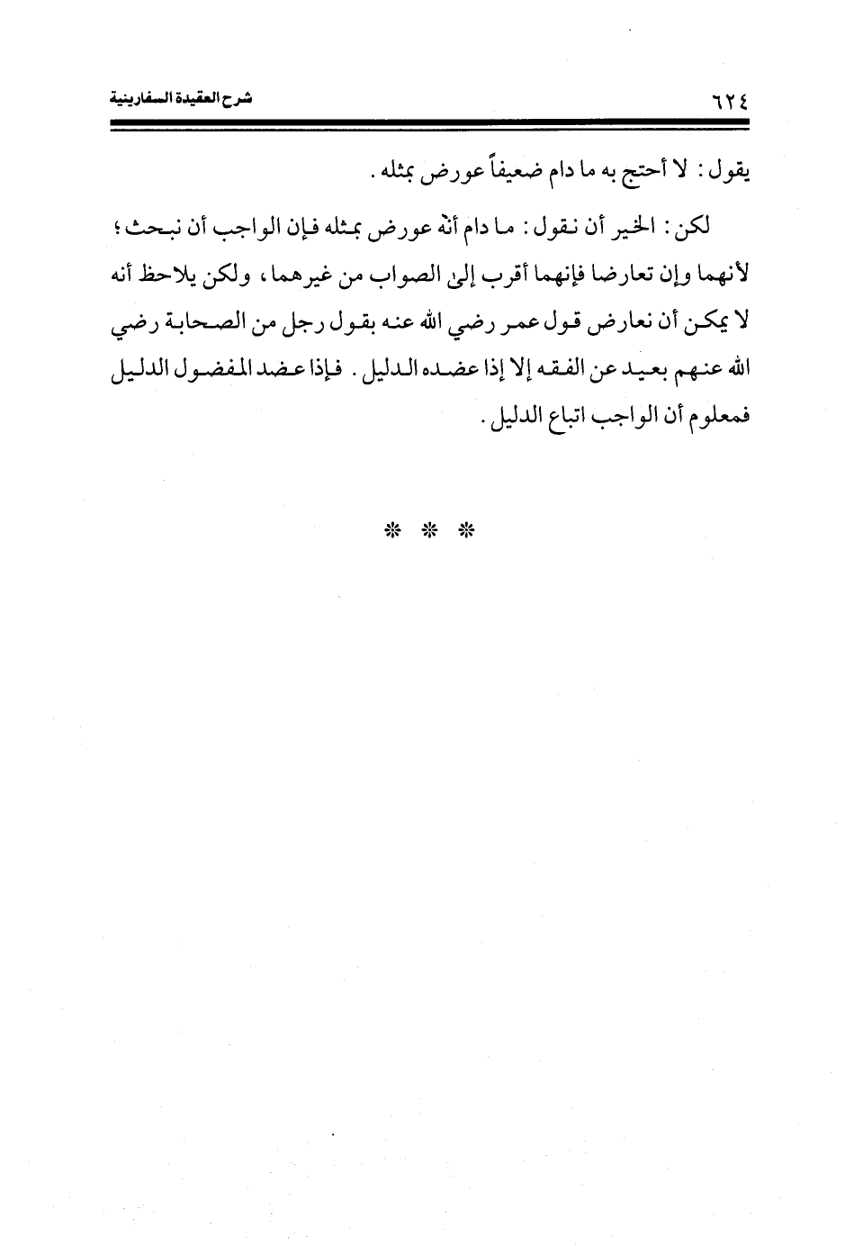 لكن: الخير أن نقول: ما دام أنه عورض بمثله فإن الواجب أن نبحث؛ لأنهما وإن تعارضا فإنهما أقرب إلى الصواب من غيرهما، ولكن يلاحظ أنه لا يمكن أن نعارض قول عمر رضي الله عنه بقول رجل من الصحابة رضي الله عنهم بعيد عن الفقه إلا إذا عضده الدليل. فإذا عضد المفضول الدليل فمعلوم أن الواجب إتباع الدليل.