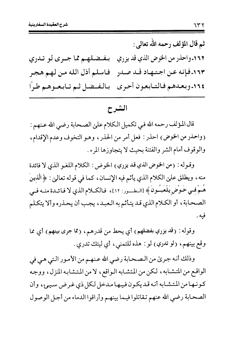 162- واحذر من الخوض الذي قد يزري ... بفضلهم مما جرى لو تدري
