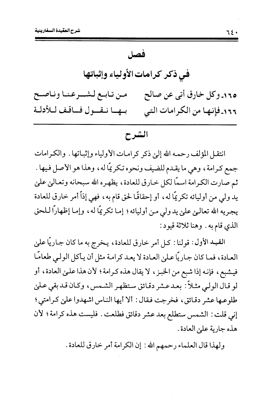 166-فإنها من الكرامات التي ... بها نقول فأقف للأدلة