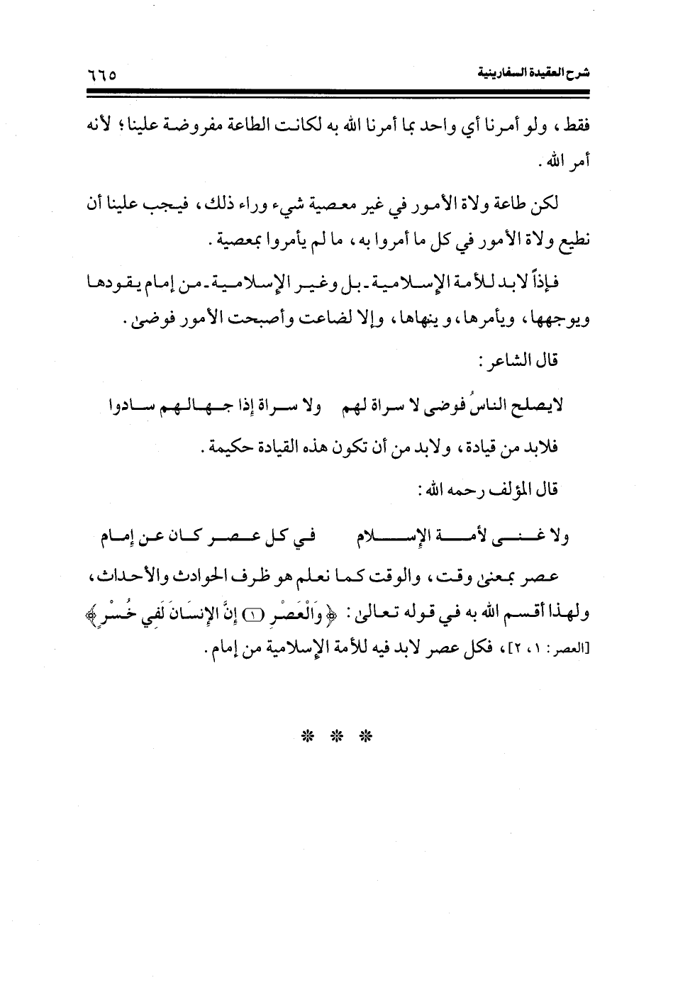 ولا غنى لأمة الإسلام ... في كل عصر كان عن إمام