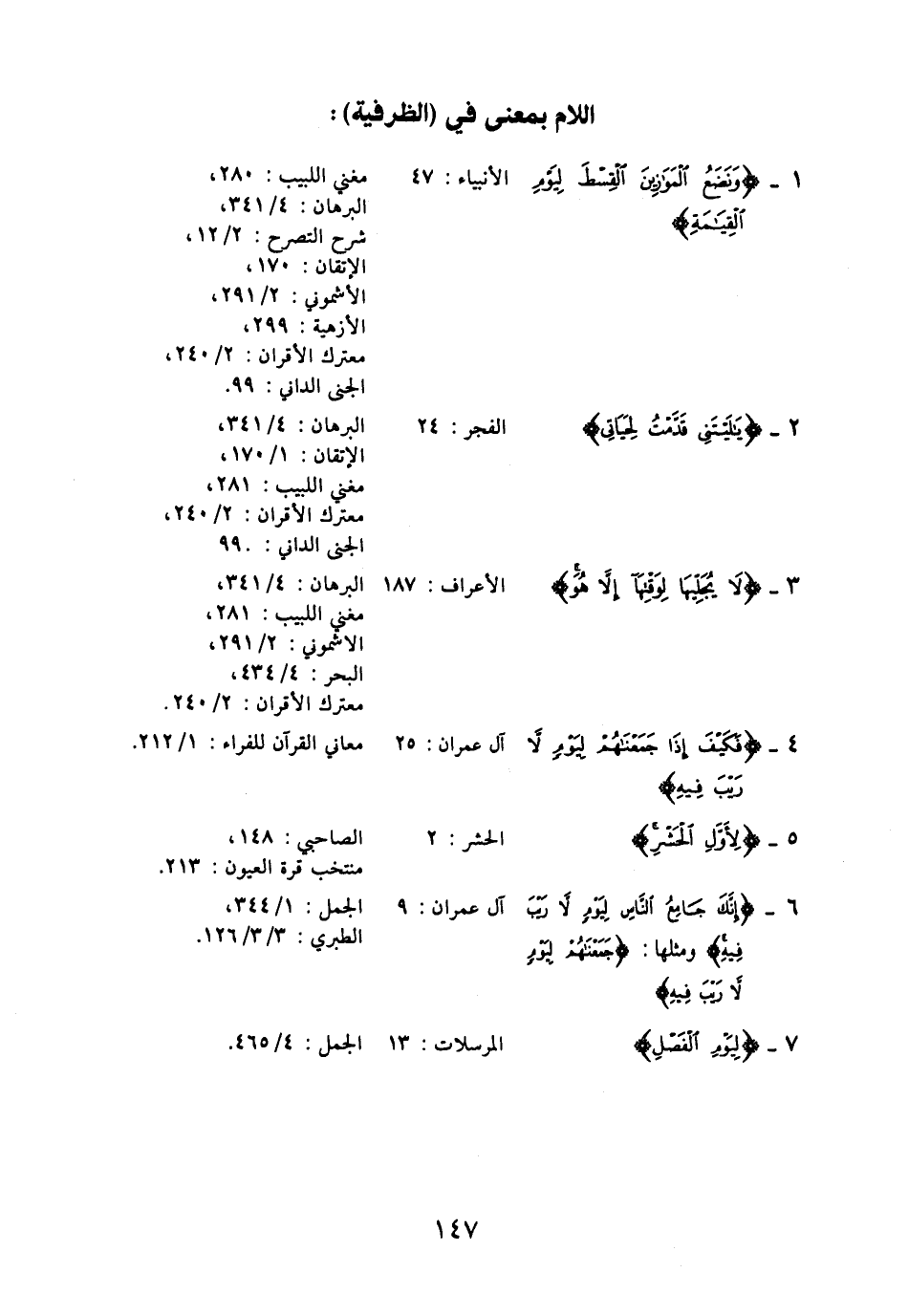 6 - (إِنَّكَ جَامِعُ النَّاسِ لِيَوْمٍ لَا رَيْبَ فِيهِ) ومثلها: (جَمَعْنَاهُمْ لِيَوْمٍ لَا رَيْبَ فِيهِ)