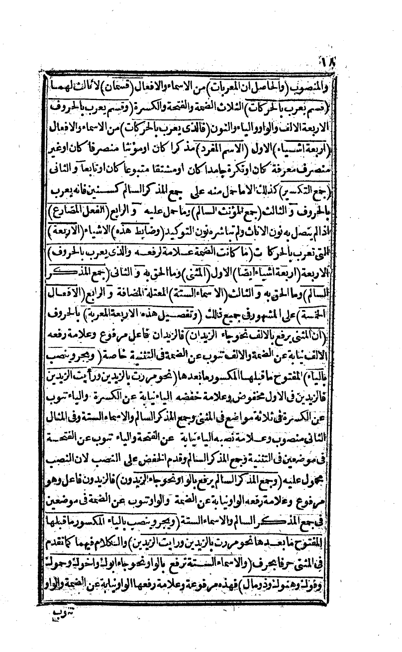 والمنصوب (والحاصل أن المعربات) من الأسماء والأفعال (قسمان) لا ثالث لهما (قسم بعرب بالحركات) الثلاث الضمة والفتحة والكسرة (وقسم يعرب بالحروف الأربعة) الألف والواو والياء والنون (فالذي يعرب بالحركات) من الأسماء والأفعال (أربعة أشياء) الأول (الاسم المفرد) مذكرا كان أو مؤنثا منصرفا كان أو غير منصرف معرفة كان أو نكرة جامدا كان أو مشتقا متبوعا كان أو تابعا والثاني (جمع التكسير) كذلك الأماجل منه على جمع المذكر السالم كسنين فإنه يعرب بالحروف والثالث (جمع المؤنث السالم) وما حمل عليه والرابع (الفعل المضارع) إذا لم يتصل به نون الأناث ولم تباشره نون التوكيد (وضابط هذه) الأشياء (الأربعة) التي تعرب بالحركات (ما كانت الضمة علامة لرفعه والذي يعرب بالحروف) الأربعة (أربعة أشياء أيضًا) الأول (المثنى) وما الحق به والثاني (جمع المذكر السالم) وما الحق به والثالث (الأسماء الستة) المعتلة المضافة والرابع (الأفعال الخمسة) على المشهور في جميع ذلك (وتفصيل هذه الأربعة المعربة) بالحروف (فالمثنى يرفع بالألف نحو جاء الزيدان) فالزيدان فاعل مرفوع وعلامة رفعه الألف نيابة عن الضمة والألف تنوب عن الضمة في التثنية خاصة (ويجر وينصب بالياء) المفتوح ما قبلها المكسور ما بعدها (نحو مررت بالمزيدين ورأيت الزيدين) فالزيدين في الأول مخفوض وعلامة خفضه الياء نيابة عن الكسرة والياء تنوب عن الكسرة في ثلاثة مواضع في المثنى وجمع المذكر السالم والأسماء الستة وفي المثال الثاني منصوب وعلامة نصبه الياء نيابة عن الفتحة والياء تنوب عن الكسرة في ثلاثة مواضع في المثنى وجمع المذكر السالم والأسماء الستة في المثال الثاني منصوب وعلامة نصبه الياء نيابة عن الفتحة والياء تنوب عن الفتحة في موضعين في التثنية وجمع المذكر السالم والأسماء الستة وفي المثال الثاني منصوب وعلامة نصبه الياء نيابة عن الفتحة والياء تنوب عن الفتحة في موضعين في التثنية وجمع المذكر السالم وقدم الخفض على النصب لأن النصب محمول عليه (وجمع المذكر السالم يرفع بالواو ونحو جاء الزيدون) فالزيدون فاعل وهو مرفوع وعلامة رفعه الواو نيابة عن الضمة والواو