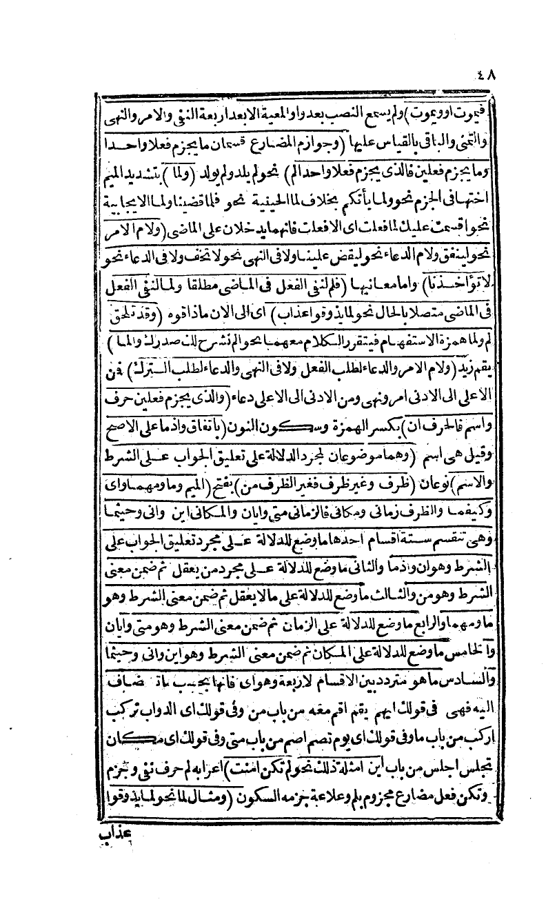 فيموت أو ويموت) ولم يسمح النصب بعد واو المعية إلا بعد أربعة النفي والأمر والنهي والتمني والباقي بالقياس عليها (وجوازم المضارع قسمان ما يجزم فعلا واحدا) وما يجزم فعلين فالذي يجزم فعلا واحدا (لم) نحو لم يلد ولم يولد (ولما) بتشديد الميم أختها في الجزم نحو ولما يأتكم بخلاف لما الحينية نحو فلما قضينا ولما الإيجابية نحو قسمت عليك لما فعلت أي إلا فعلت فإنهما يدخلان على الماضي (ولام الأمر) نحو لينفق (ولام الدعاء نحو ليقض علينا (ولا في النهي) نحو لا تخف (ولا في الدعاء) نحو لا تؤاخذنا وأما معانيها (فلم لنفي الفعل في الماضي مطلقا ولما لنفي الفعل في الماضي متصلا بالحال نحو لما يذوقوا عذاب) أي إلى الأن ما ذاقوه (وقد تلحق لم ولما همزة الاستفهام) فيتقرر الكلام معهما (نحو ألم نشرح لك صدرك وألما يقم زيد ولام الأمر والدعاء لطلب الفعل ولا في النهي والدعاء لطلب الترك) فمن الأعلى إلى الأدنى أمر ونهي ومن الأدنى إلى الأعلى دعاء (والذي يجزم فعلين حرف واسم فالحرف أن) بكسر الهمزة وسكون النون (باتفاق النحاة واذ ما على الأصح) وقيل هي اسم (وهما موضوعان لمجرد الدلالة على تعليق الجواب على الشرط والاسم) نوعان (ظرف وغير ظرف فغير الظرف من) بفتح الميم (وما ومهما وأي وكيفما والظرف زماني ومكاني فالزماني متى وأيان والمكاني أين وأنى وحيثما وهي تنقسم ستة أقسام) أحدها (ما وضع للدلالة على مجرد تعليق الجواب على الشرط وهو من والثالث ما وضع للدلالة على ما لا يعقل ثم ضمن معنى الشرط وهو ما ومهما) والرابع (ما وضع للدلالة على الزمان ثم ضمن معنى الشرط وهو متى وأيان) والخامس (وما وضع للدلالة على المكان ثم ضمن معنى الشرط وهو ابن واني وحيثما) والسادس (وما هو متردد بين الأقسام الخمسة، وهو أي فإنها بحسب ما تضاف إليه) فهي في قولك أيهم يقم أقم معه من باب من وفى قولك أي مكان تجلس اجلس من باب أين أمثلة ذلك نحو لم تكن أمنت إعرابه لم حرف نفي وجزم وتكن فعل مضارع مجزوم بلم وعلامة جزمه السكون (ومثال لما نحو لما يذوقوا