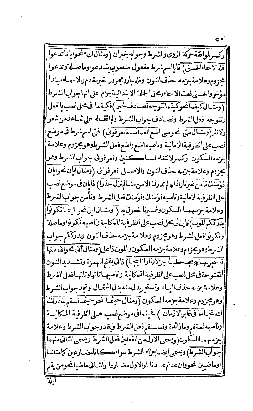 وكسر لموافقة حركة الروى والشرط وجوابه خبران (ومثال أي نحو أياما تدعوا فله الأسماء الحسنى) فايا اسم شرط مفعول منصوب بتدعوا وما صلة وتدعوا مجزوم وعلامة جزمه حذف النون وفله جارو مجرور خبر مقدم والأسماء مبتدأ مؤخر والحسنى نعت الأسماء ومحل الجملة الابتدائية جزم على أنها جواب الشرط (ومثال كيفما نحو كيفيما تتوجه تصادف خيرًا) فكيفما في محل نصب بالفعل وتتوجه فعل الشرط وتصادف جواب الشرط ولم أقف له على شاهد من شعر ولا نثر (ومثال متى نحو متى أضع العمامة تعرفوني) فمتى اسم شرط في موضع نصب على الظرفية الزمانية وناصبه اضع واضع فعل الشرط وهو مجزوم وعلامة جزمه السكون وكسر لالتقاء الساكنين وتعرفوني جواب الشرط وهو مجزوم وعلامة جزمه حذف النون والأصل تعرفونني (ومثال أيان نحو