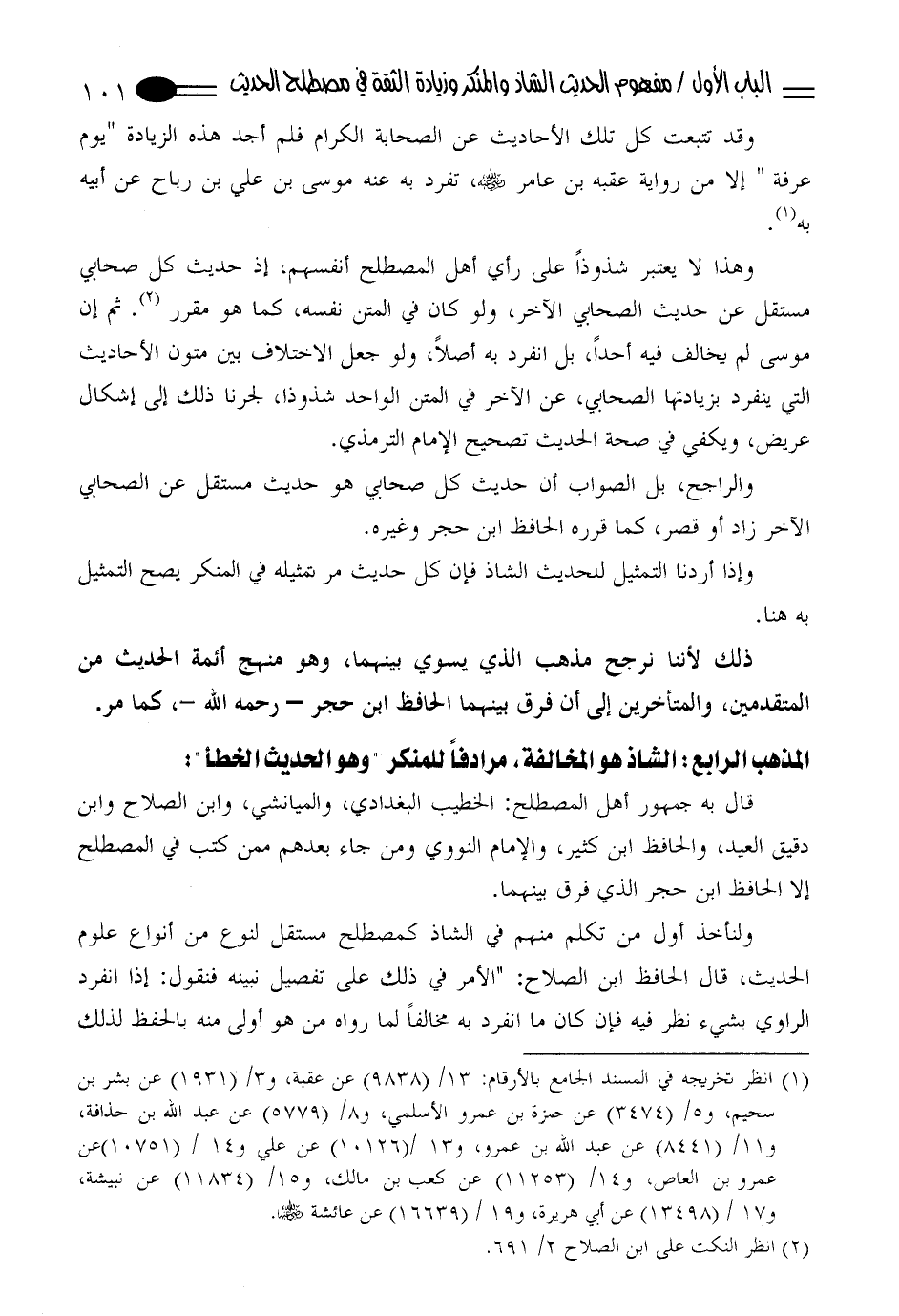 كتاب الشاذ والمنكر وزيادة الثقة - موازنة بين المتقدمين والمتأخرين