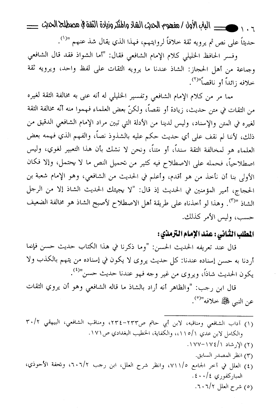قال ابن رجب: " والظاهر أنه أراد بالشاذ ما قاله الشافعي وهو أن يروي الثقات عن النبي - صلى الله عليه وسلم - خلافه" (¬5).