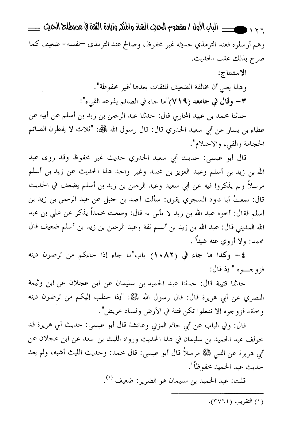 كتاب الشاذ والمنكر وزيادة الثقة - موازنة بين المتقدمين والمتأخرين