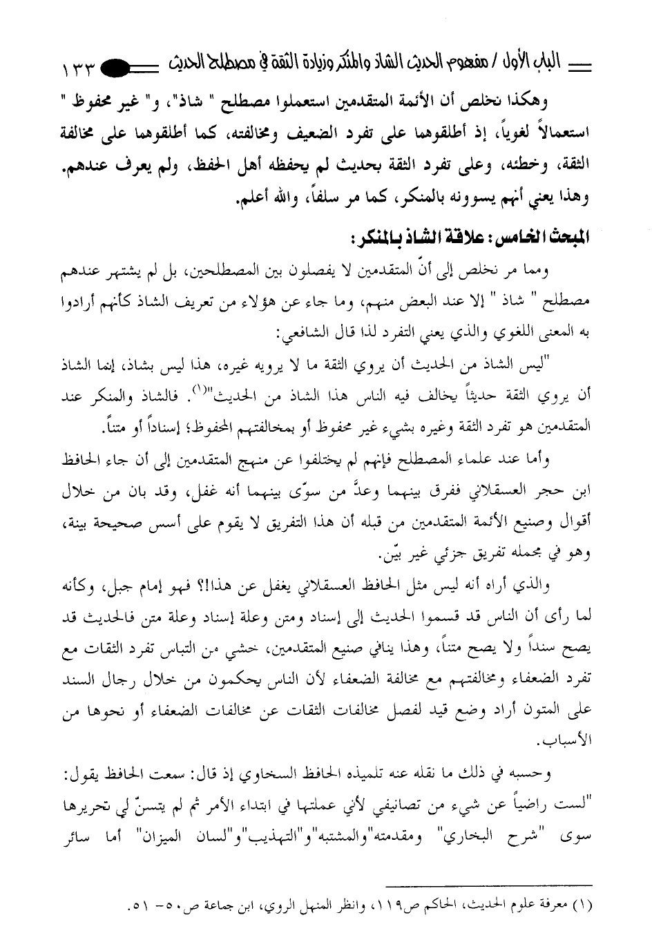 كتاب الشاذ والمنكر وزيادة الثقة - موازنة بين المتقدمين والمتأخرين