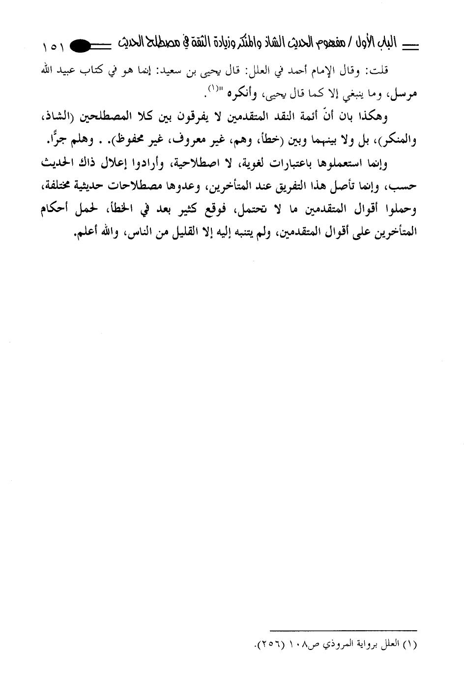 كتاب الشاذ والمنكر وزيادة الثقة - موازنة بين المتقدمين والمتأخرين