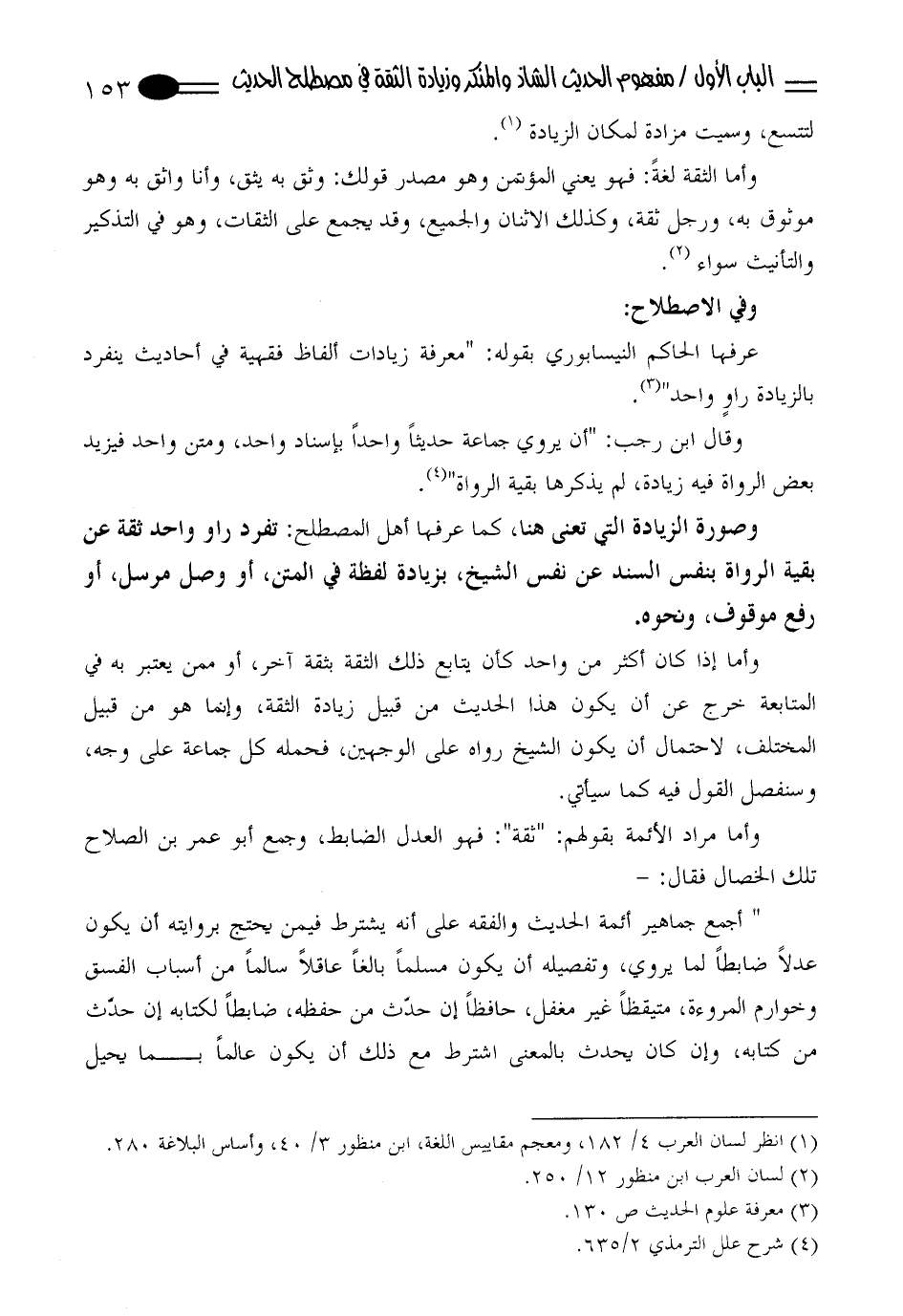 كتاب الشاذ والمنكر وزيادة الثقة - موازنة بين المتقدمين والمتأخرين
