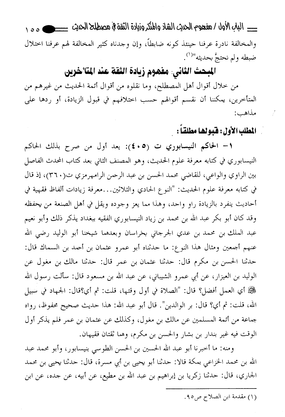كتاب الشاذ والمنكر وزيادة الثقة - موازنة بين المتقدمين والمتأخرين