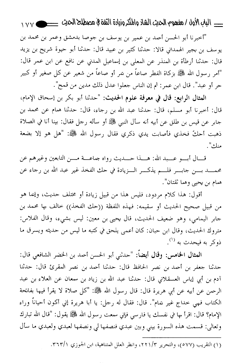 (¬1) التقريب (577)، والتحرير 3/ 221، وانظر العلل المتناهية، ابن الجوزي 1/ 363.
