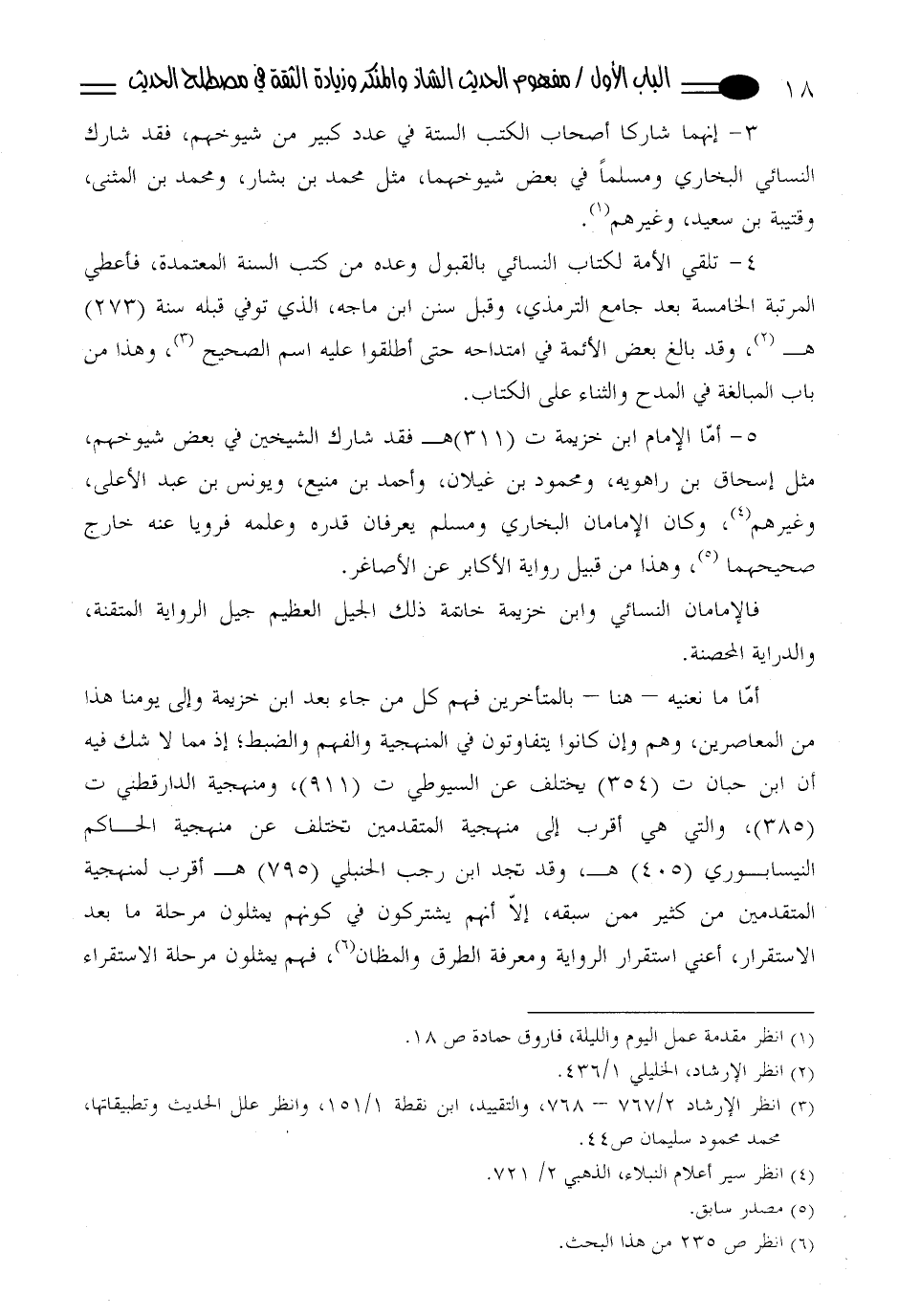 (385)، والتي هي أقرب إلى منهجية المتقدمين تختلف عن منهجية الحاكم النيسابوري (405) هـ، وقد تجد ابن رجب الحنبلي (795) هـ أقرب لمنهجية المتقدمين من كثير ممن سبقه، إلاّ أنهم يشتركون في كونهم يمثلون مرحلة ما بعد الاستقرار، أعني استقرار الرواية ومعرفة الطرق والمظان (¬6)، فهم يمثلون مرحلة الاستقراء