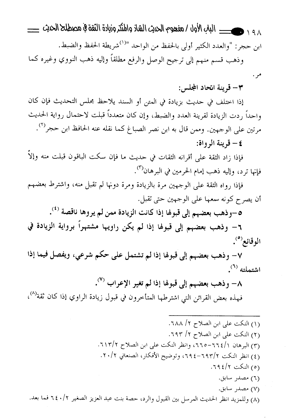 فهذه بعض القرائن التي اشترطها المتأخرون في قبول زيادة الراوي إذا كان ثقة (¬8)،