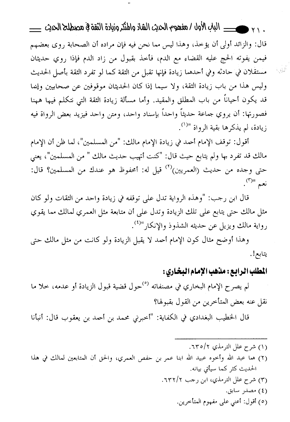 أقول: توقف الإمام أحمد في زيادة الإمام مالك: " من المسلمين"، لما ظن أن الإمام مالك قد تفرد بها ولم يتابع حيث قال: " كنت أتهيب حديث مالك " من المسلمين "، يعني حتى وجده من حديث (العمريين) (¬2) قيل له: أمحفوظ هو عندك من المسلمين؟ قال: نعم " (¬3).