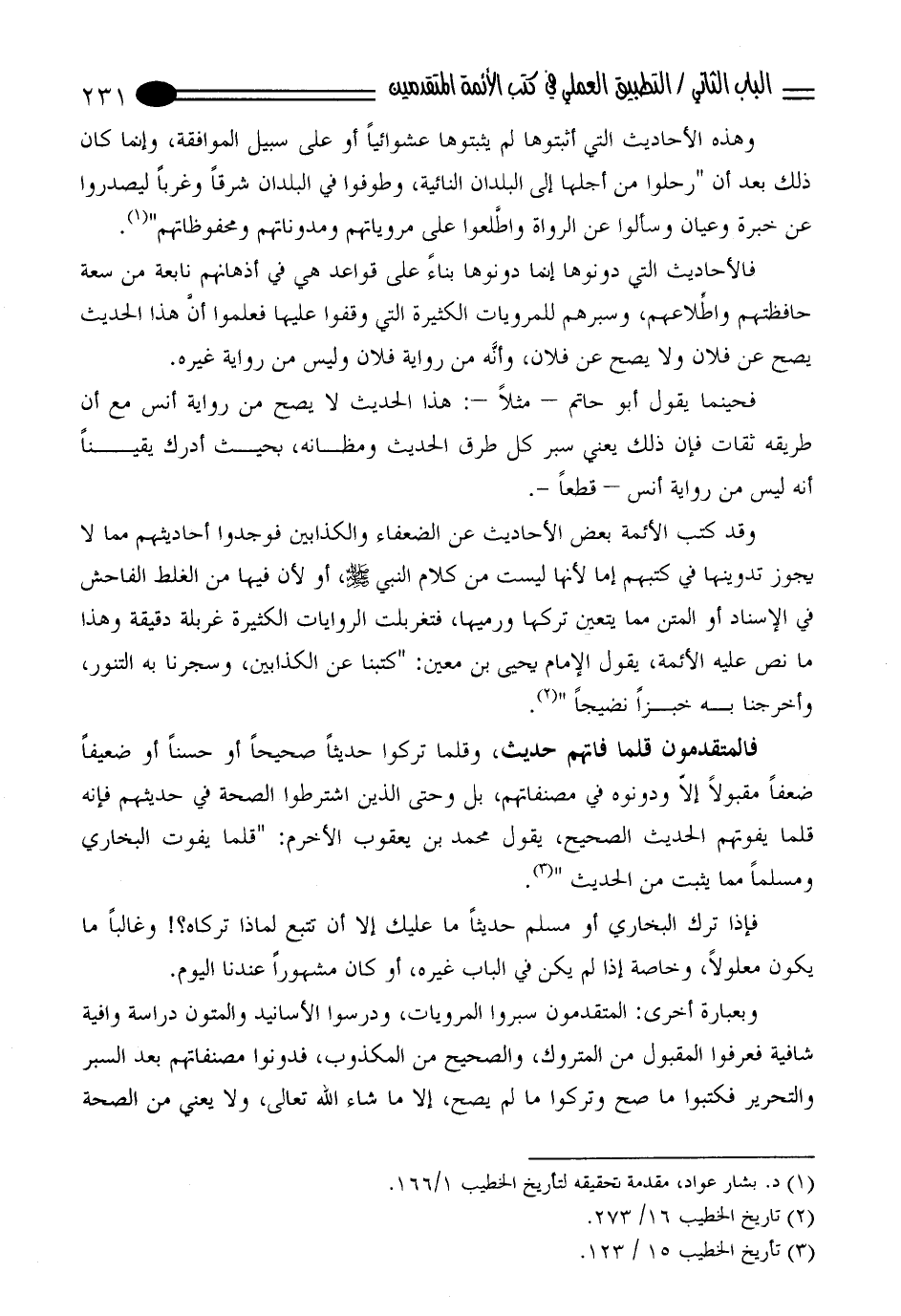 (¬1) د. بشار عواد، مقدمة تحقيقه لتأريخ الخطيب 1/ 166.