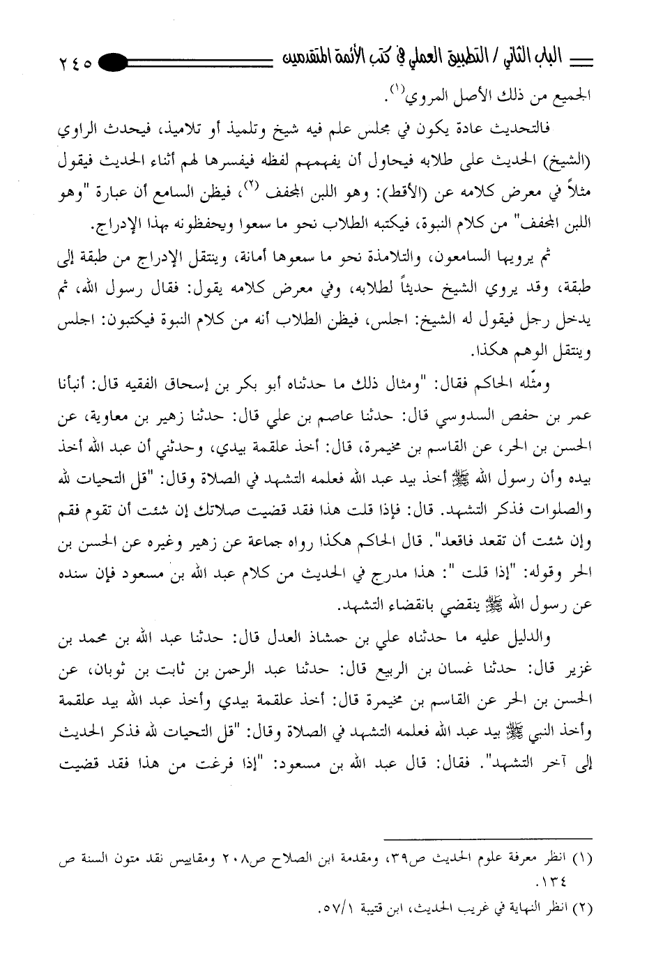 (¬1) انظر معرفة علوم الحديث ص39، ومقدمة ابن الصلاح ص208 ومقاييس نقد متون السنة ص134.