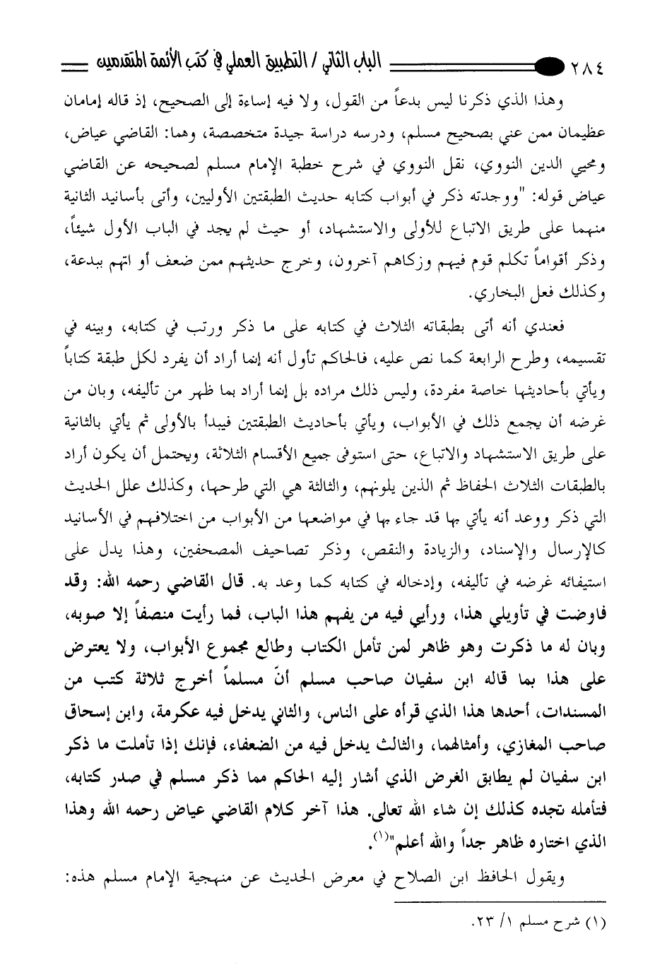 ويقول الحافظ ابن الصلاح في معرض الحديث عن منهجية الإمام مسلم هذه: