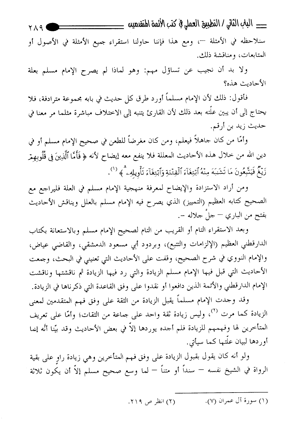 ومن أراد الاستزادة والإيضاح لمعرفة منهجية الإمام مسلم في العلة فليراجع مع الصحيح كتابه العظيم (التمييز) الذي يصرح فيه الإمام مسلم بالعلل ويناقش الأحاديث بفتح من الباري - جلَّ جلاله -.