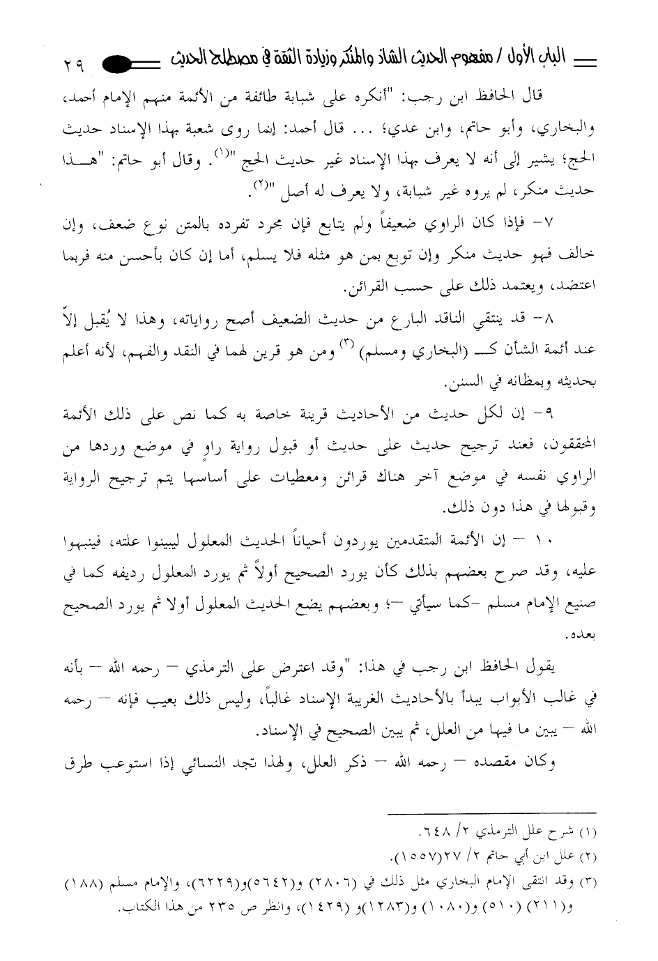 كتاب الشاذ والمنكر وزيادة الثقة - موازنة بين المتقدمين والمتأخرين