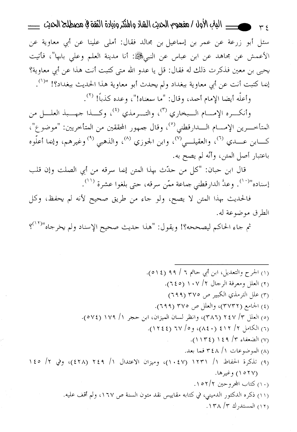 كتاب الشاذ والمنكر وزيادة الثقة - موازنة بين المتقدمين والمتأخرين