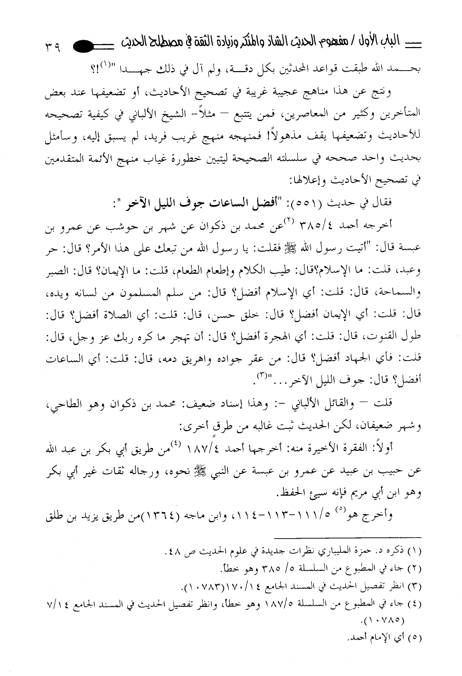 كتاب الشاذ والمنكر وزيادة الثقة - موازنة بين المتقدمين والمتأخرين