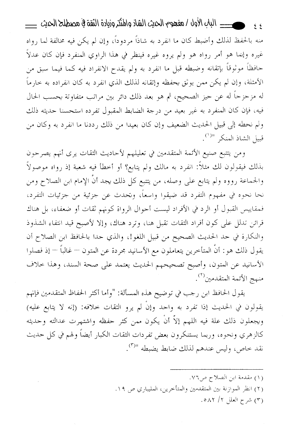 كتاب الشاذ والمنكر وزيادة الثقة - موازنة بين المتقدمين والمتأخرين