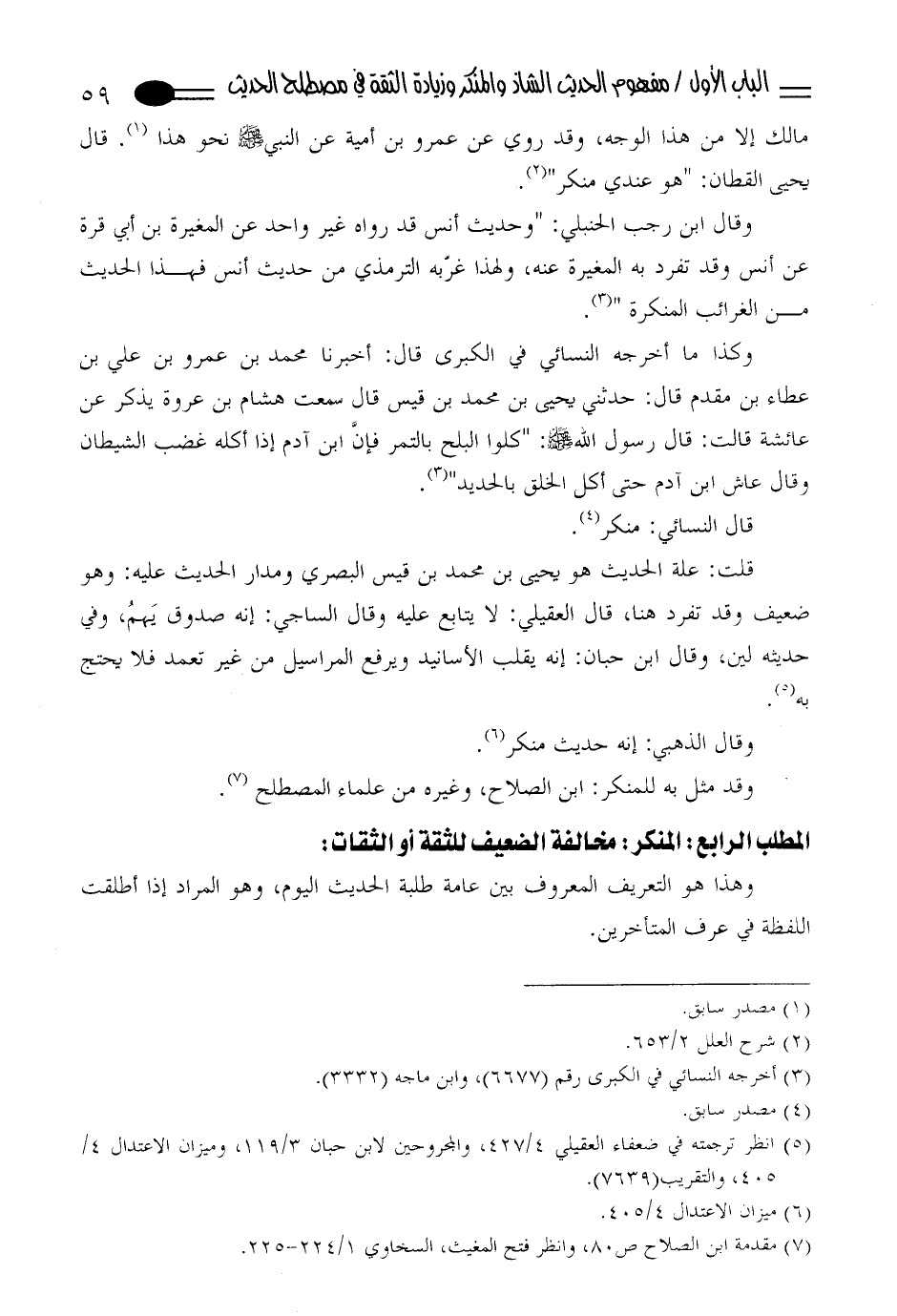 وقد مثل به للمنكر: ابن الصلاح، وغيره من علماء المصطلح (¬7).