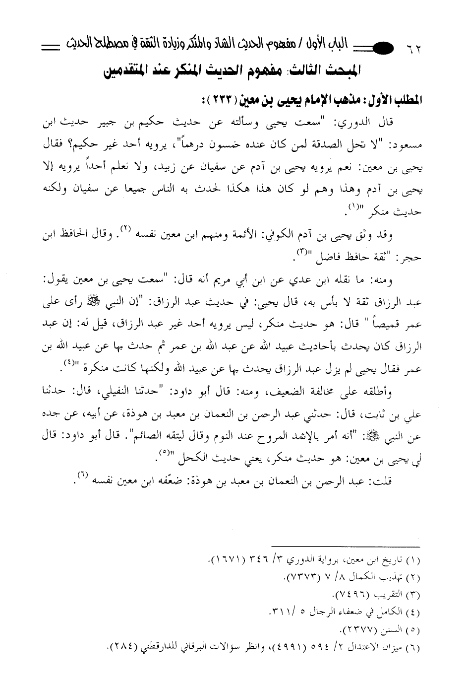 المطلب الأول: مذهب الإمام يحيى بن معين (233):