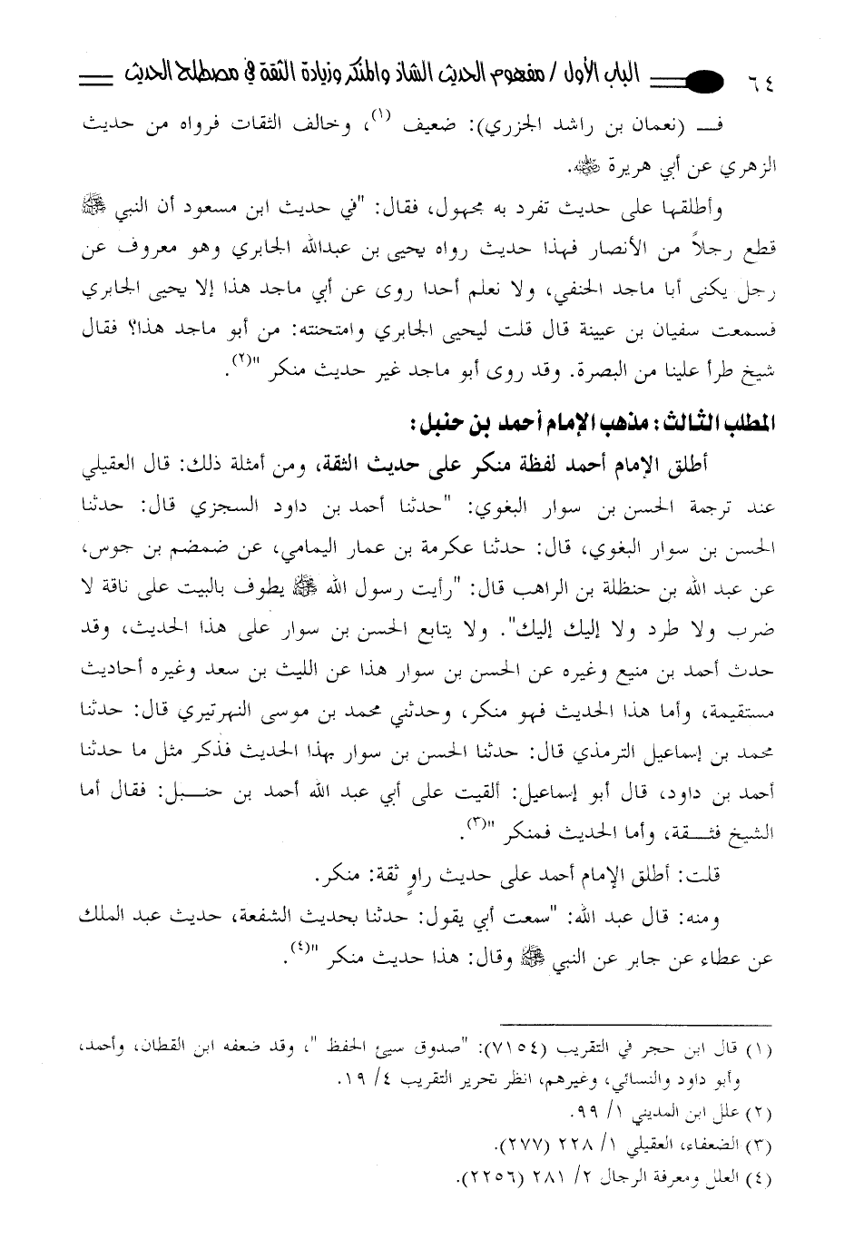 كتاب الشاذ والمنكر وزيادة الثقة - موازنة بين المتقدمين والمتأخرين