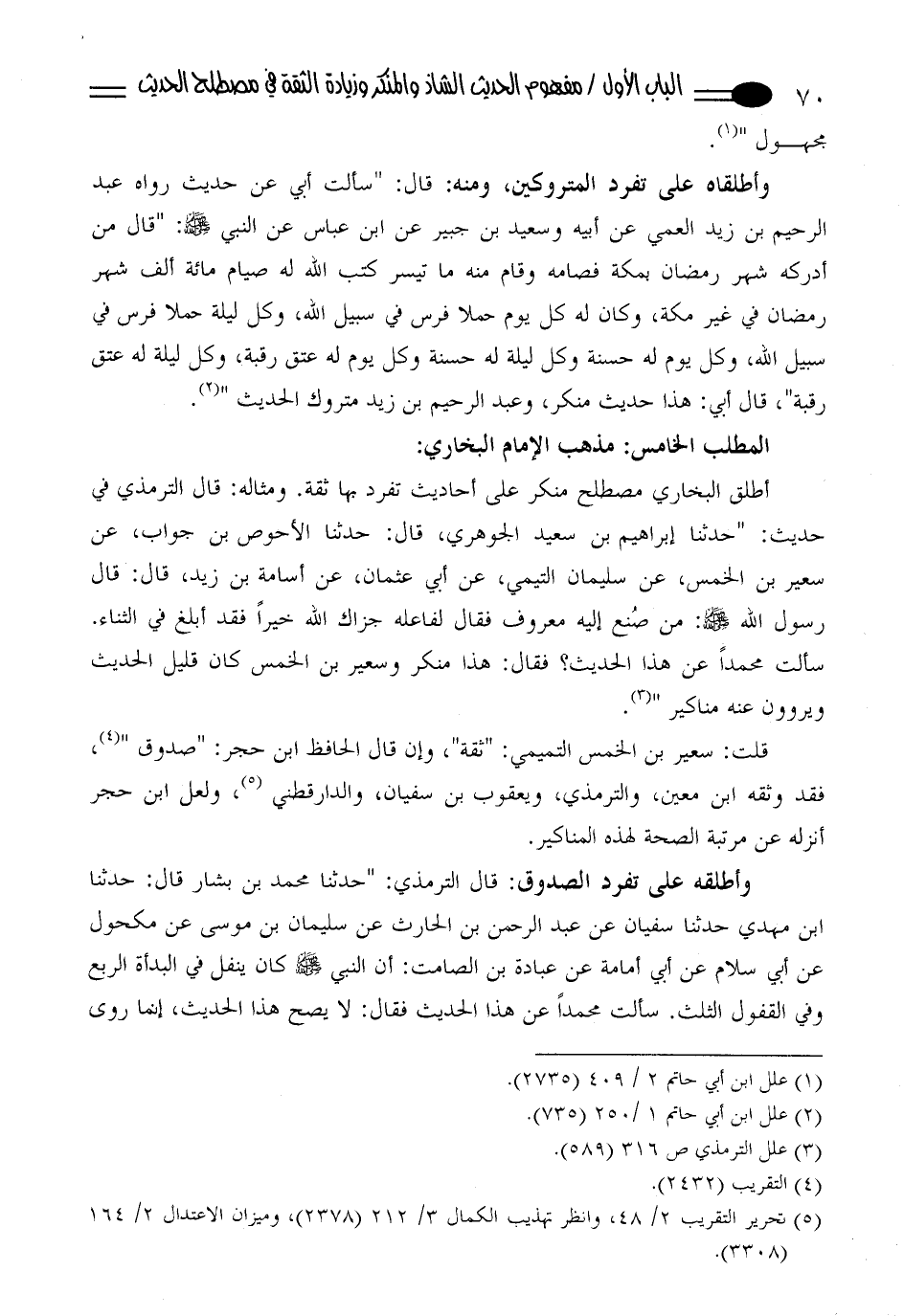 كتاب الشاذ والمنكر وزيادة الثقة - موازنة بين المتقدمين والمتأخرين