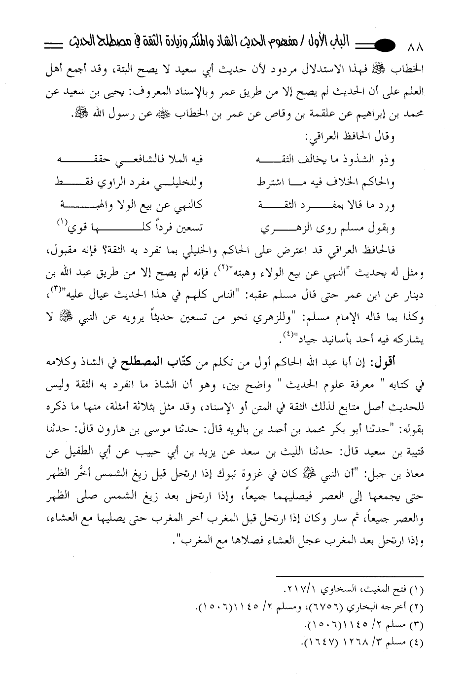 كتاب الشاذ والمنكر وزيادة الثقة - موازنة بين المتقدمين والمتأخرين