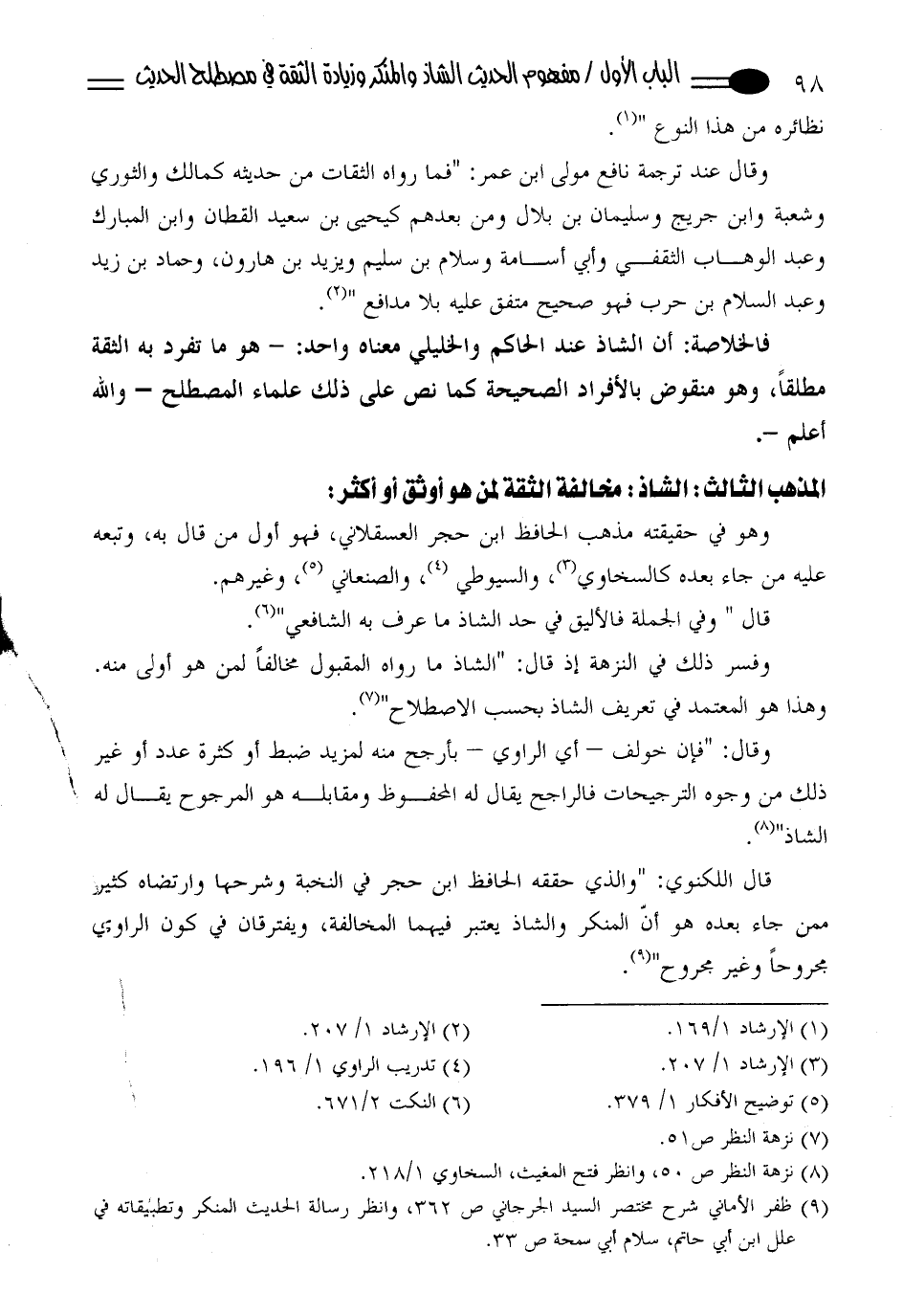 (¬9) ظفر الأماني شرح مختصر السيد الجرجاني ص 362، وانظر رسالة الحديث المنكر وتطبيقاته في علل ابن أبي حاتم، سلام أبي سمحة ص 33.