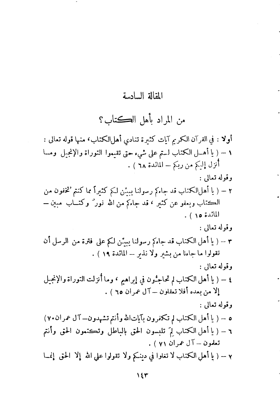 1 - (يا أهل الكتاب لستم على شئ حتى تقيموا التوراة والإنجيل وما أنزل إليكم من ربكم - المائدة 68).