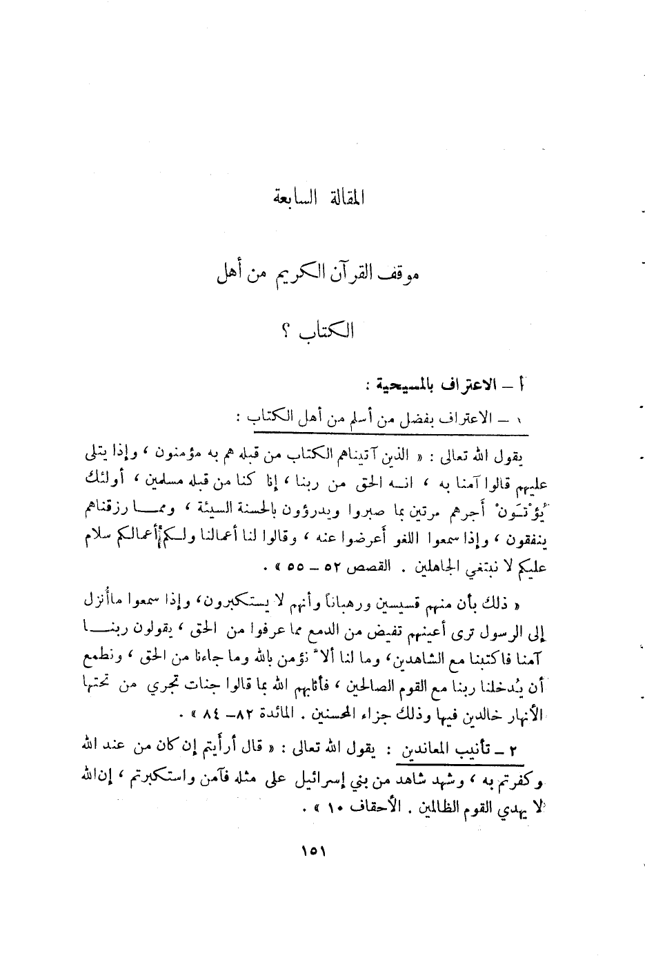 المقالة السابعة موقف القرآن الكريم من أهل الكتاب؟