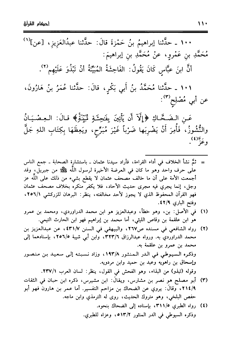 100 - حدثنا ابراهيم بن حمزة قال حدثنا عبد العزيز عن محمد بن عمرو عن محمد بن ابراهيم