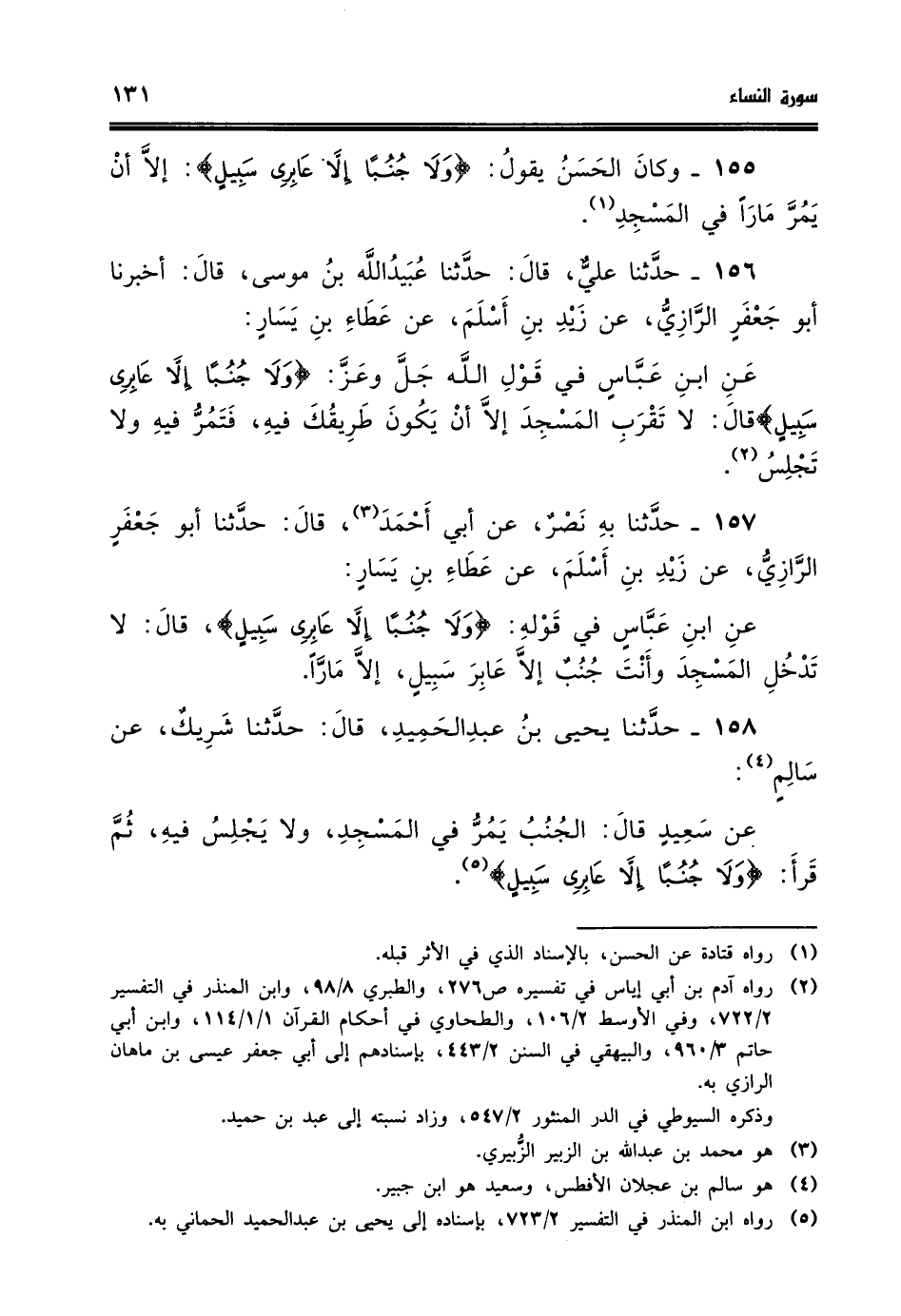 155 - وكان الحسن يقول ولا جنبا الا عابرى سبيل الا ان يمر مارا في المسجد