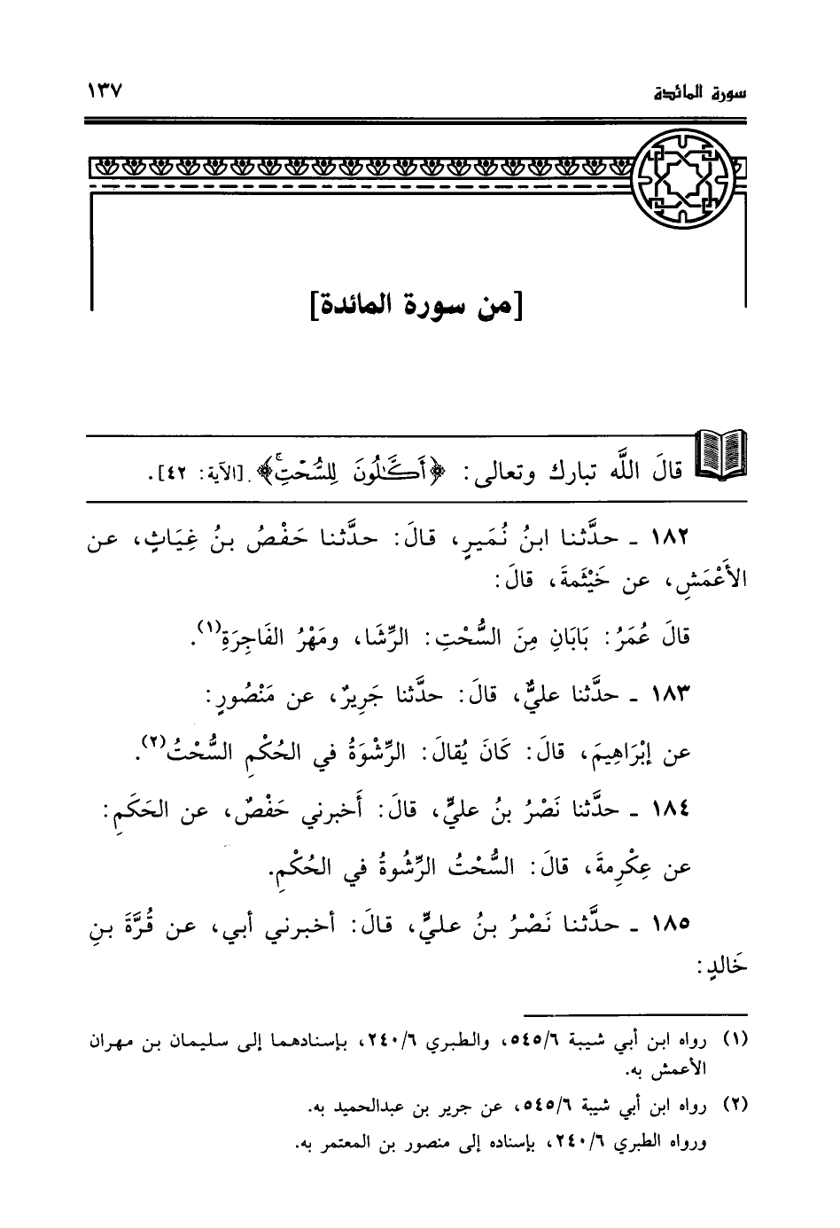 184 - حدثنا نصر بن علي قال اخبرني حفص عن الحكم عن عكرمة قال السحت الرشوة في الحكم