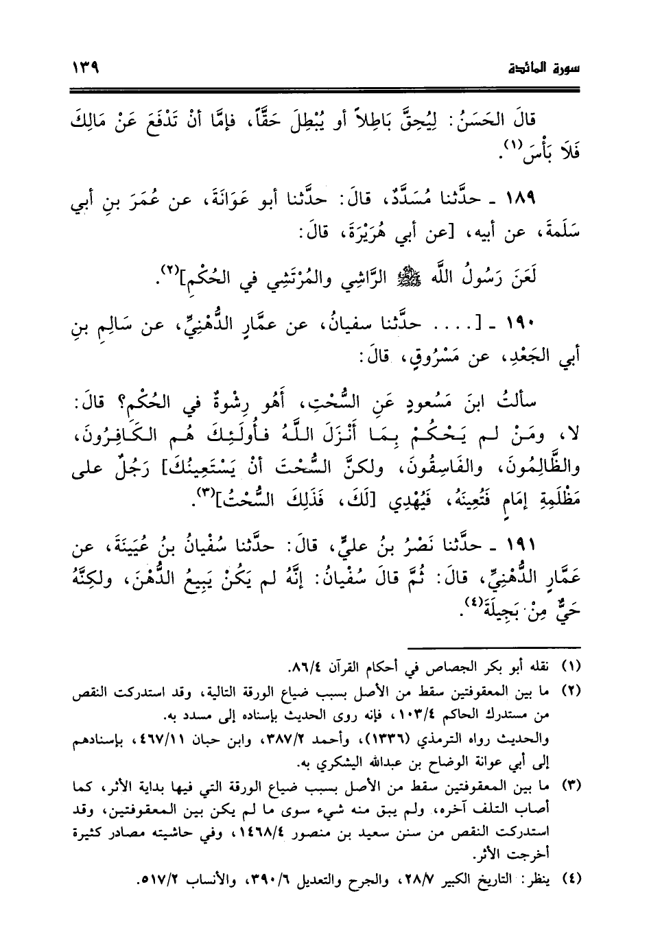 190 - حدثنا سفيان عن عمار الدهني عن سالم بن الجعد عن مسروق قال