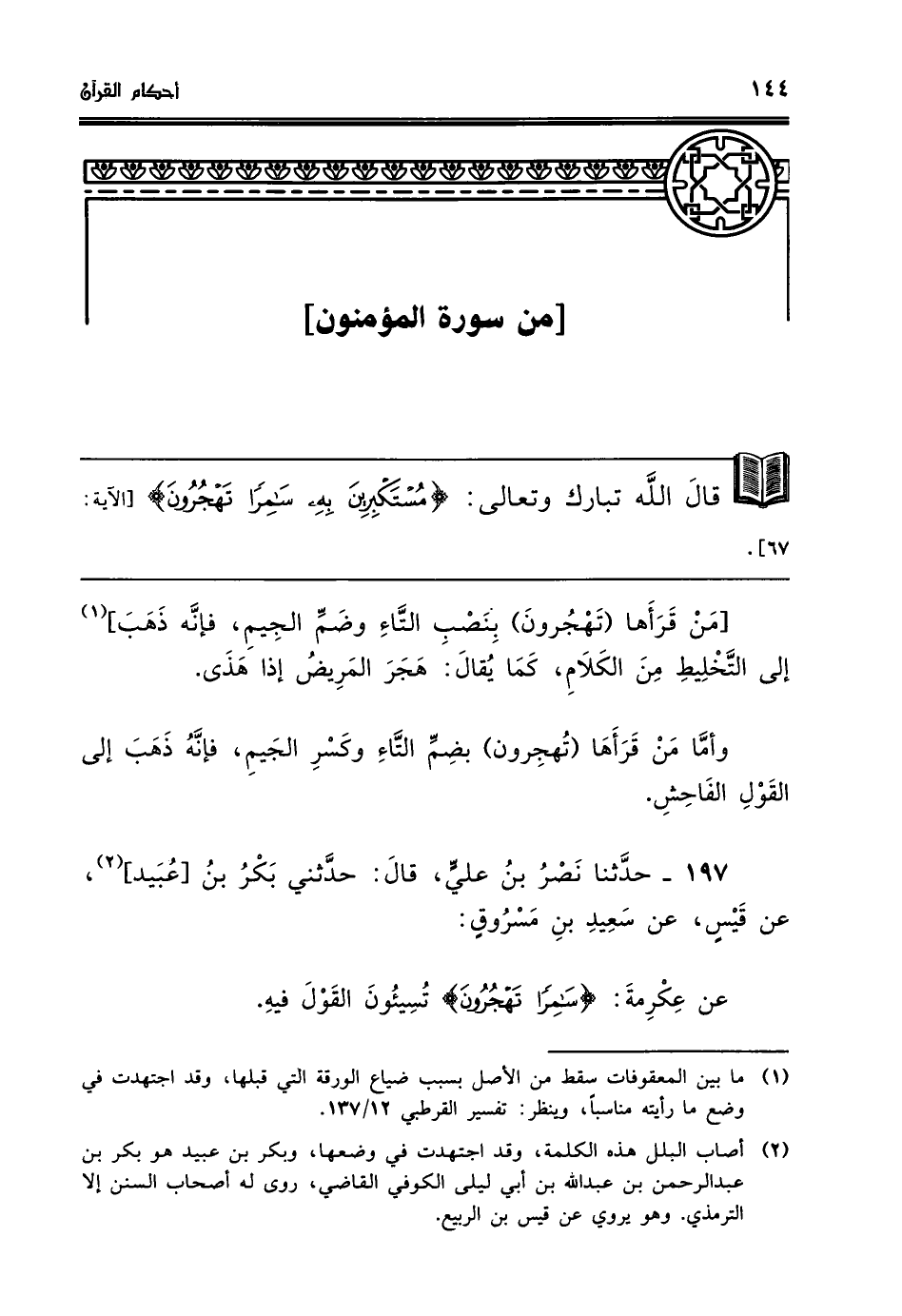 عن عكرمة سامرا تهجرون تسيئون القول فيه