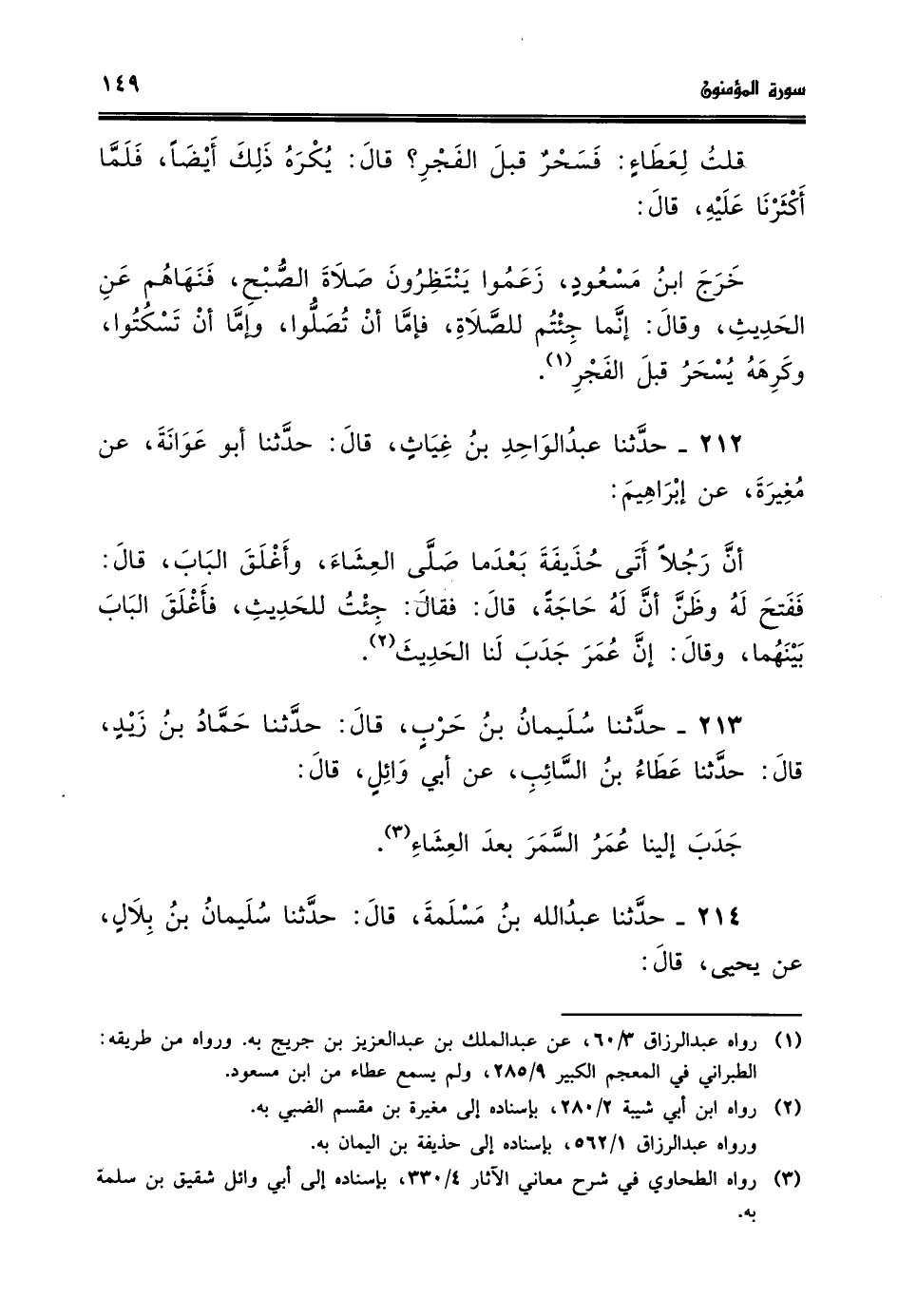 213 - حدثنا سليمان بن حرب قال حدثنا حماد بن زيد قال حدثنا عطاء بن السائب عن ابي وائل قال