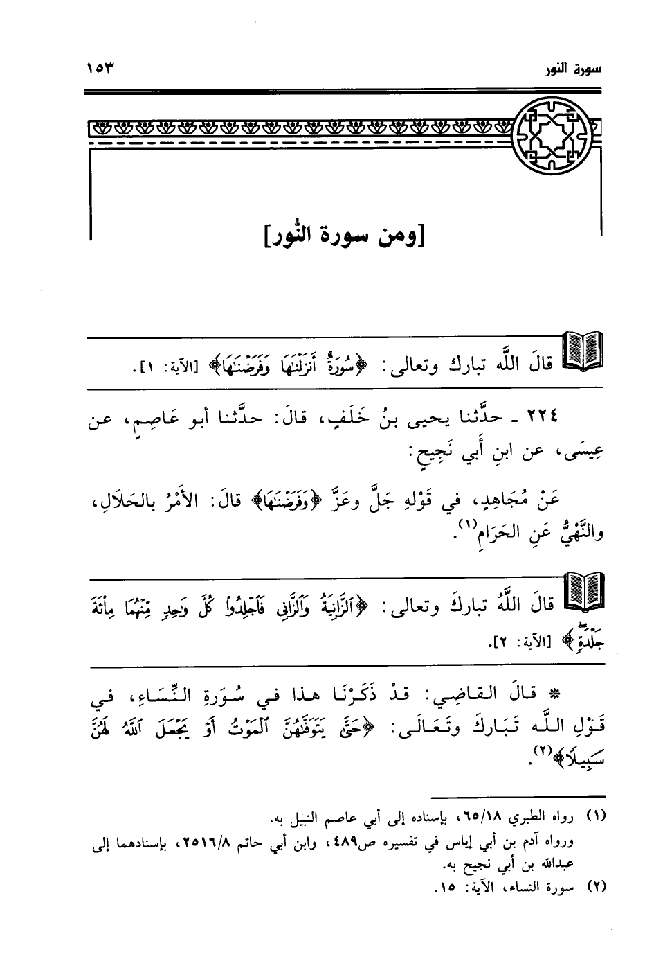 224 - حدثنا يحيى بن خلف قال حدثنا ابو عاصم عن عيسى عن ابن ابي نجيح