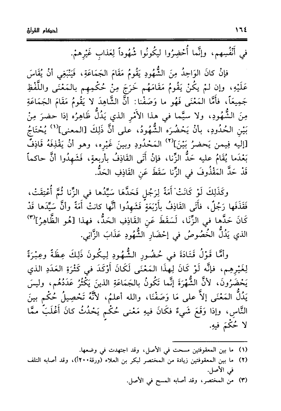 واما قول قتادة في حضور الشهود ليكون ذلك عظة وعبرة لغيرهم فانه لو كان