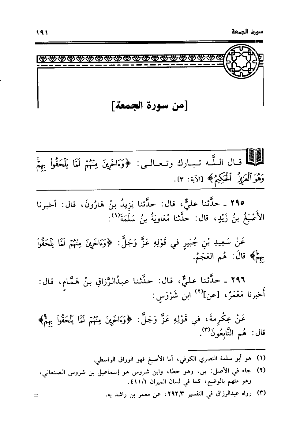 عن سعيد بن جبير في قوله عز وجل وءاخرين منهم لما يلحقوا بهم قال هم العجم
