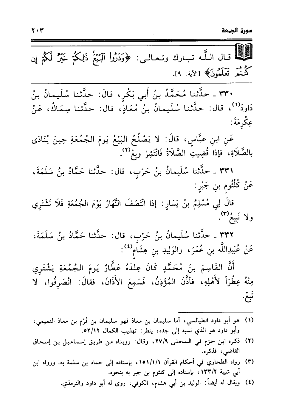 331 - حدثنا سليمان بن حرب قال حدثنا حماد بن سلمة عن كلثوم بن جير