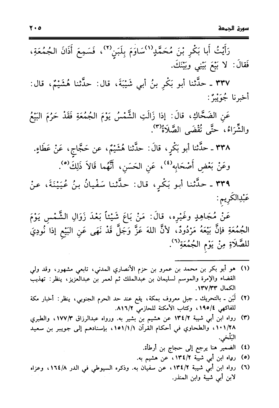رايت ابا بكر بن محمد ساوم بلبن فسمع اذان الجمعة فقال لا بيع بيني وبينك
