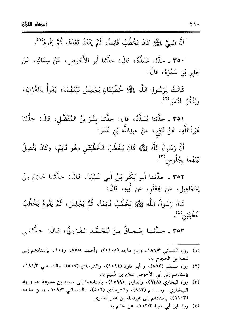 ان النبي صلي الله عليه وسلم كان يخطب قائما ثم يقعد قعدة ثم يقوم