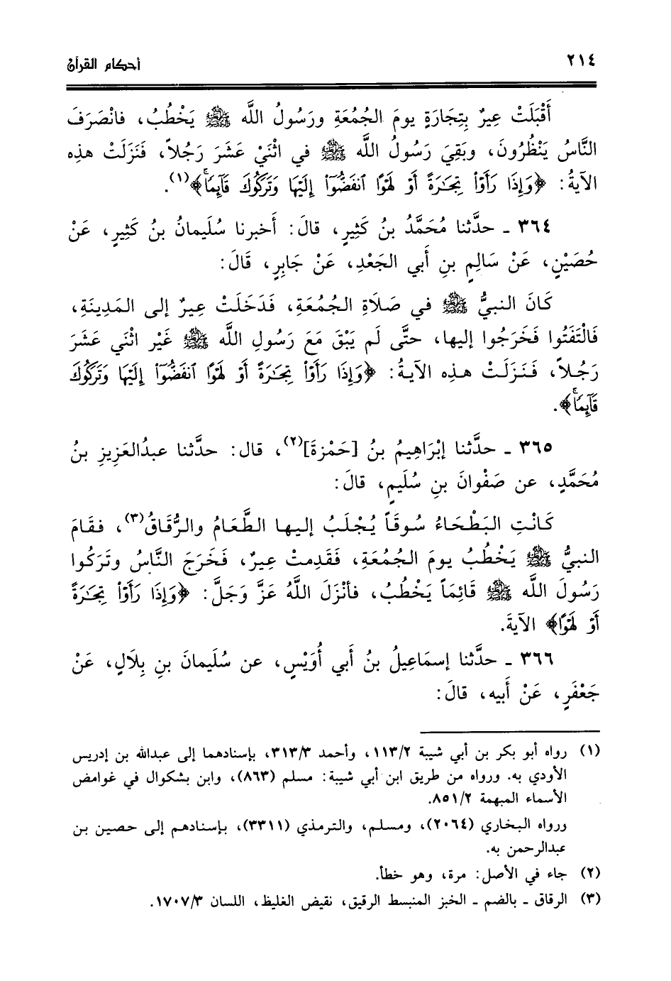 364 - حدثنا محمد بن كثير قال اخبرنا سليمان بن كثير عن حصين عن سالم بن ابي الجعد عن جابر قال